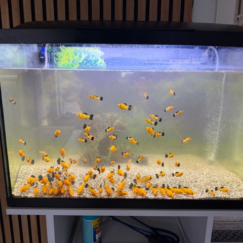 For sale 100 liter aquarium with fish and everything you need. I have Guppy fish, Zebra fish, 3 cleaning fish and another model. It is sold with food, pump and light.