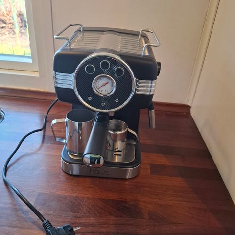 Espressomaskinen er nem at bruge og rengøre. Der bruges kaffe-/espressopulver.
