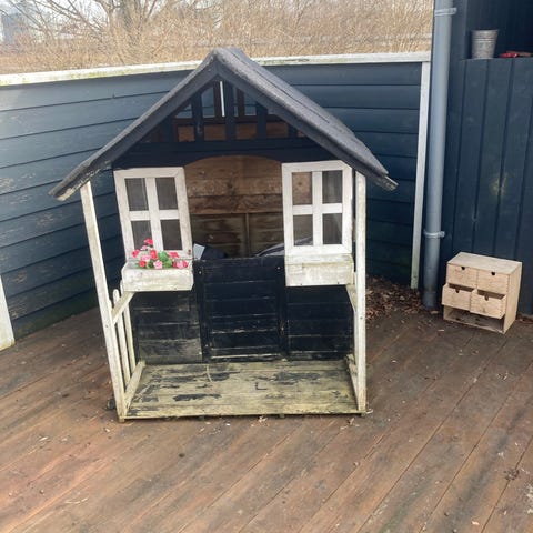 Køber skal selv skille ad og transportere ud gennem låge på billede. Vi bor i bilfrit område og bil kan derfor ikke komme helt hen til lågen. Trailer kan dog godt komme ind på området (uden bil).