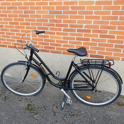 Jeg sælger denne attraktive cykelmodel. Kædelås eller anden lås skal du selv bidrage med. Cyklen har almindelige brugsskrammer men er absolut funktionel og velfungerende. Der er et lillebitte hul i sadlen som kun er af kosmetisk karakter. Der er desuden støttefod og baggagebærer monteret.