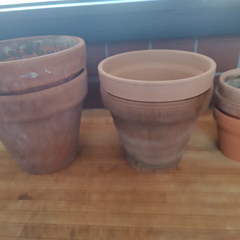 Lerpotte til planter med dia. 30 cm og 15 cm høj.