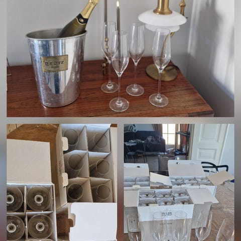 9 Holmegaard champagneglas model Cabernet - dem gamle model, der er høj (højde 29cm).