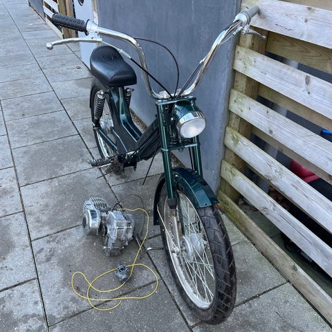 Puch Maxi knallert i grøn farve klar til foråret og sommer.