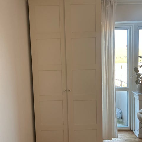 IKEA skab hvid med hylder og blomstret låge