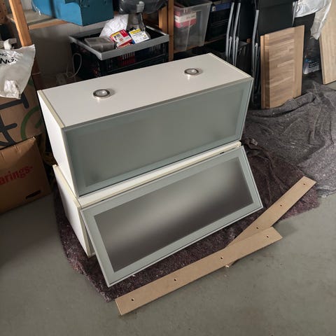 Vægmonteret køkkenskab med glaslåger hvid