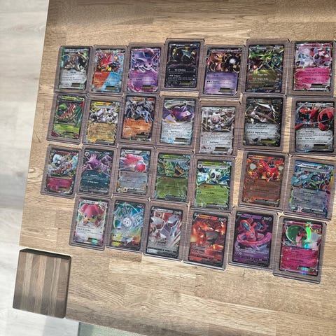 Pokémon samlekort med 5 kort. Kortene ligger i røde beskyttelseslommer. Motiverne omfatter forskellige Pokémon-figurer og illustrationer. Velegnet til samling eller bytning for Pokémon-interesserede.