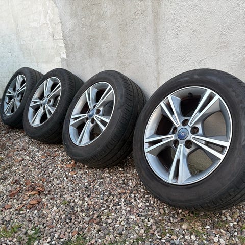 Original Ford alufælge med Bridgestone sommerdæk. 215/55/17. Dot 1/23. 5-6 mm. Centerhul 63, 4 mm. Passer også til Volvo