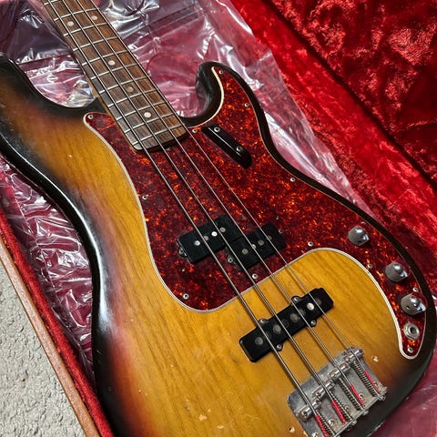 Tokai Hard Puncher elbas fra 1984. Der er monteret Lindy Fralin picks ups. De gamle medfølger. Er fuld på højde med vintage Fender p bas. Lige hals og rigeligt med bånd.