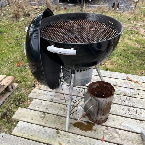 Kuglegrill til kul i sort. Grillen har rund kuppelform med låg og grillrist i metal. Monteret på stativ med hjul for nem flytning og håndtag på fronten til åbning og lukning af låget. Velegnet til udendørs madlavning i have, terrasse eller altan, hvor der ønskes traditionel kulgrillning.
