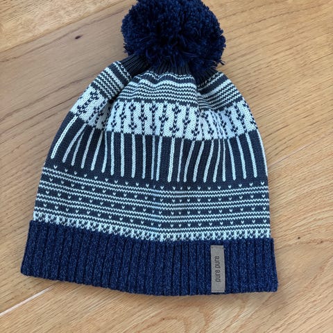 Lyserød lilla hvid motiv. Mørkeblå hue.