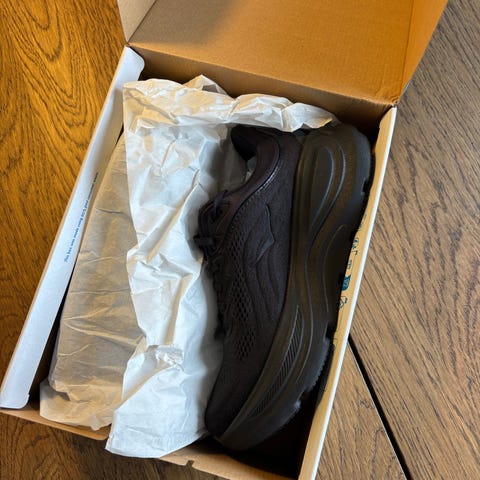 Hoka Bondi løbesko i størrelse 41,5 Modellen er en neutral løbesko egnet til løb.