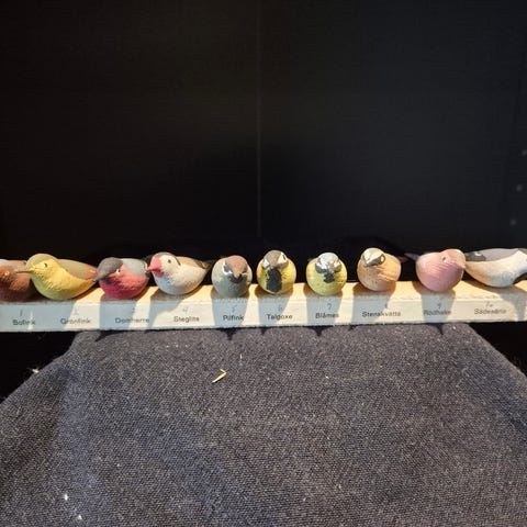 Træ fugle, brugskunst, hobby, Super søde fugle i træ. Sælges for 40 kr pr sæt. Et sæt består af 2 fugle (11,5 lang og 7 cm høj samt 14,5 lang og 8,5 cm høj).