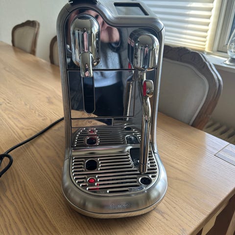 Sælger min Nespresso Vertuo Creatista, som netop har været til reparation hos Nespresso og derfor er så god som ny. Maskinen kommer med garanti fra reparationen, så du får en næsten ny maskine til en markant lavere pris end ny.