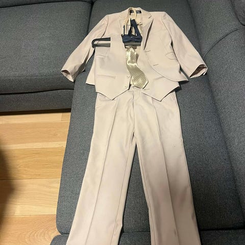 Flot jakkesæt med stretch i str 146/152 i mørkeblå.