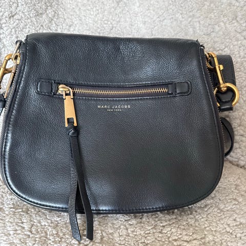 Den ikoniske lille Natasha fra Marc by Marc Jacobs. Brugt, alm brugspor på, små mærke indvendig på fore, patina på skulderrem. Læder i meget god stand. Tjek alle billeder for mål og stand. En klassiker som kan bruges videre uden problemer.