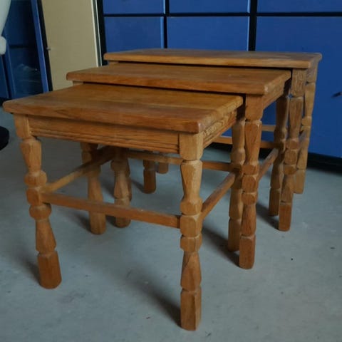 Sælger disse 3 indskudsborde for mine bedsteforældre. De er i meget flot stand og har nærmest i alt den tid, jeg kan huske stået til pynt, altså de er blevet brugt meget lidt.