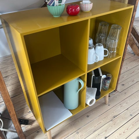 2 stk Kubik Color reoler med hylder i lys i farven “Lys Grå”. Det ene skab har fire hylder og det andet to. Begge har påmonterede hjul hvoraf to er med bremse, så de kan stå fast. Måler 70x79 og er dybde 32.