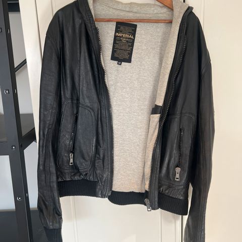Læderjakke, str. L, Fdn, Sort, Læder, Næsten som ny, Produkt Italien
