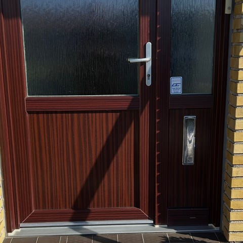 Storke facadedør 211x95cm. Døren er i ok stand til byggedør, skur, garage eller lign.