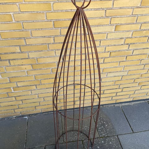 11 stk Have obelisk klatrestativ i metal. Stativet består af flere snoede metalstænger, der samles i toppen med buede afslutninger. Egnet som støtte til klatreplanter i haven, eksempelvis ved bede, krukker eller langs en væg eller hegn. Velegnet til både dekorativ og praktisk brug som plante- og blomsterstøtte.