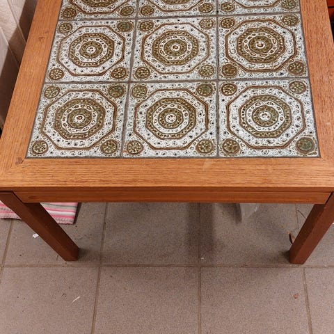 Bord med enkelte brugsmærker og en sort plet på træet, der muligvis kan fjernes