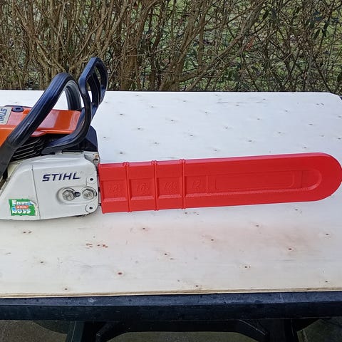 Super god motorsav. Stihl MS 250 C motorsav med tilhørende sværd og flere ekstra savkæder og fil. Benzindrevet kædesav med orange og hvidt kabinet samt sort håndtag. På billederne ses originalt Stihl-sværd med kædebeskytter samt flere pakker Stihl savkæder og et ekstra sværd. Velegnet til almindeligt skov- og havearbejde, beskæring og opskæring af brænde. Alle viste dele medfølger efter aftale med sælger. Har lige været til service. Kan afhentes 6840 Oksbøl eller 7000 Fredericia.