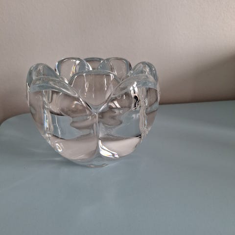 Holmegaard fyrfadsstage i klart glas. 7 cm høj