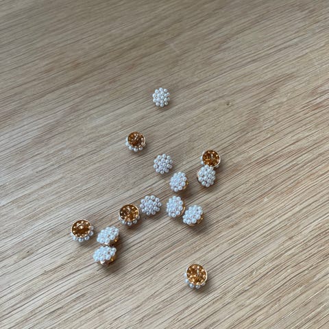 Flotte perleknapper til en dragt, jakke eller øreringe.