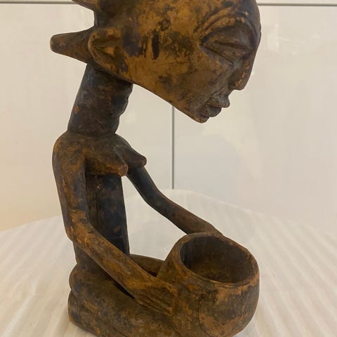 Antikvarisk rituel frugtbarhedssymbol udskåret i ben eller knogle - sandsynligvis fra Namibia eller den Demokratiske Republik Congo. Figuren er 19 cm høj og er forsynet med hår lavet af snor. Figuren sælges for 550 kr., som betales kontant eller via MobilePay ved afhentning fra adresse.