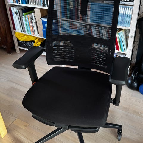 3 måneder gammel, den bedste stol jeg nogensinde har haft. Der medfølger ekstra sæde, hvis noget bliver slidt, er det dét.
