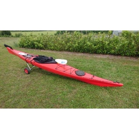 To glasfiber Havkajakker i rød og hvid farve. Kajakken er egnet til ture på hav og fjord og har opbevaringslugerne foran og bagtil samt elastikker på dækket til fastgørelse af udstyr. Sæde og cockpit er udformet til en siddende roposition med fodstøtter. Velegnet til én person ad gangen og kan bruges til fritidsroning og længere ture afhængigt af udstyr og roerens niveau. Der medfølger pagajer i Kevlar, transportvogn, spraydæk, pagajflyder og tagbøjler til bil. Kajakkerne er hhv 5,20 meter lang og 5,25 meter lang, der gør dem velegnet til hhv en større og en mindre person. Sættet sælges samlet