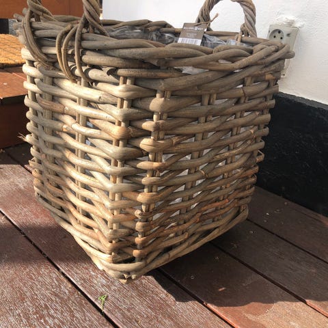 Flettede plantekurve i rattanlook i grå nuance. Kurvene er høje og rektangulære med bærehanke siden. Der medfølger metalstel med hjul, som gør dem lette at flytte rundt. De er store nok, til at kunne plante et træ. Mål: højde: 150 cm. Dybde x bredde 80 x 80 cm. Prisen er pr. stk.