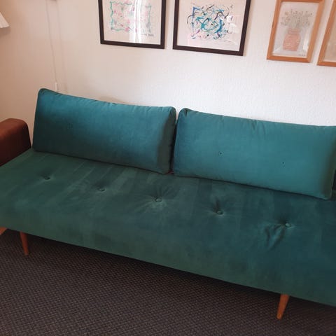 Bredde: 200 cm Højde: 86 cm Dybde: 98 cm Siddehøjde: 39 cm Sovemål: 140x200 cm