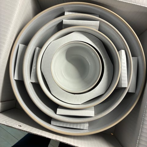 Knabstrup keramik skåle sæt à 4 stk. størrelserne ses på et af billederne. Lys farve, men ikke helt hvid. Endnu ikke brugt. 250kr.