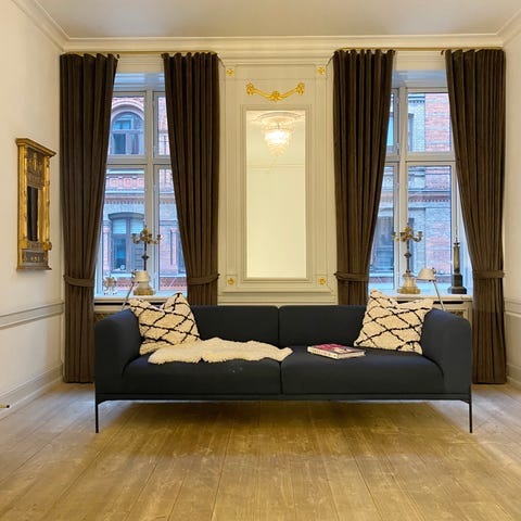 Virkelig lækker sofa med det rette "hotel-lounge look", der passer perfekt til f.eks. både den store elegante og stilrene funkis-villa i Hellerup og den imponerende 7-værelses Østerbro-lejlighed med både stuk og høje paneler.
