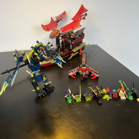 LEGO Ninjago sæt med blå jetfly og minifigurer