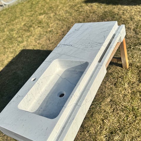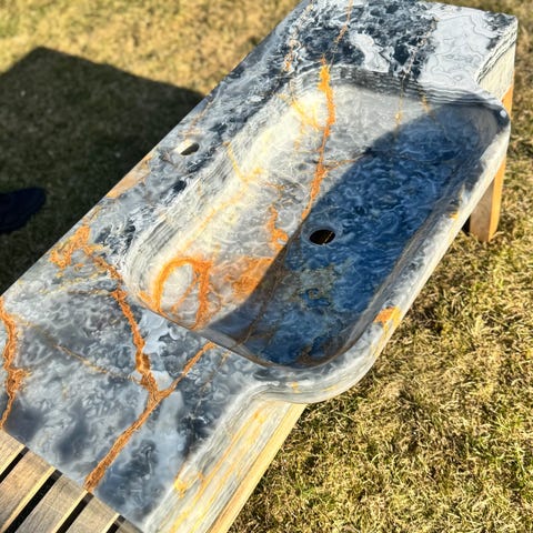 A handcrafted natural stone sink inspired by the depth and strength of the sea. Its smooth, sculptural form captures fluid elegance, bringing a serene yet commanding presence to modern and luxury bathrooms.