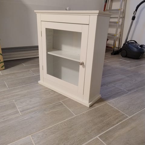 Skabet har flere indvendige hylder til opbevaring af fx toiletartikler eller småting.