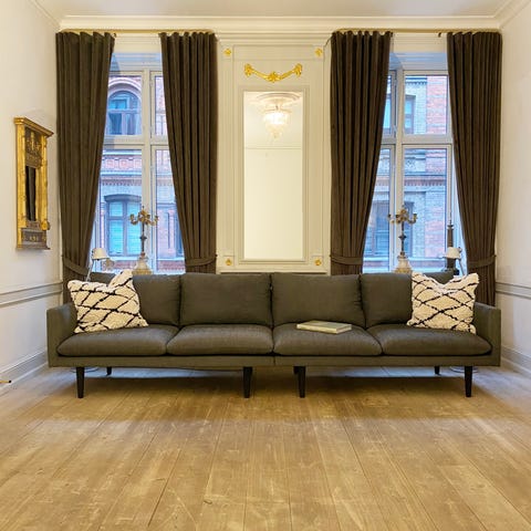 Usædvanlig flot sofa der passer perfekt til både den store elegante og stilrene funkis Hellerup-villa og den imponerende 7-værelses Østerbro-lejlighed med både stuk, profilerede fløjdøre høje paneler.