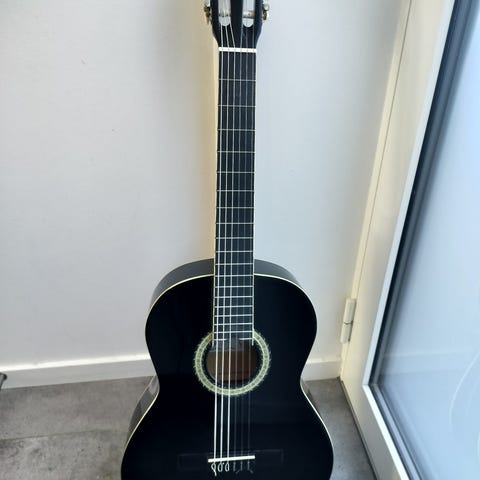 Ny og ubrugt 4/4 (39”) spansk / klassisk voksenguitar i mat naturfarve. Guitaren er stemt.