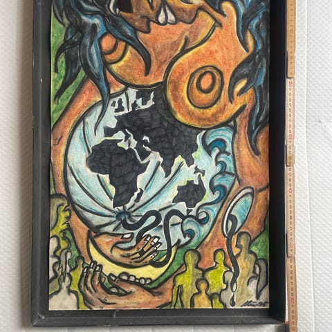Ukendt kunstner maleri farverigt bymotiv
