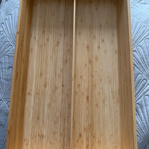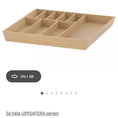 IKEA VARIERA bestikindsats i bambus. Indsatsen har flere rum i forskellige størrelser, velegnet til organisering af bestik og køkkenredskaber i en skuffe. Fremstillet i bambus med naturligt trælook.