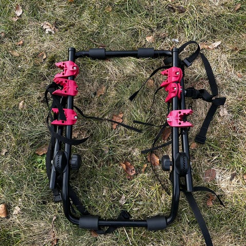 Cykelholder til anhængertræk i sort metal. Holderen er beregnet til montering på bilens anhængertræk og har to arme til fastgørelse af cykler. Velegnet til transport af cykler bag på bilen. Konstruktionen er i metal med sort overflade og er udstyret med beslag til montering på trækket.