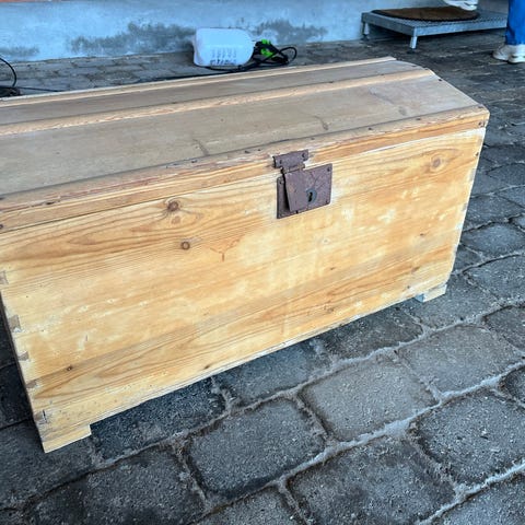 Flot og dekorativ kiste til opbevaring set forfra.