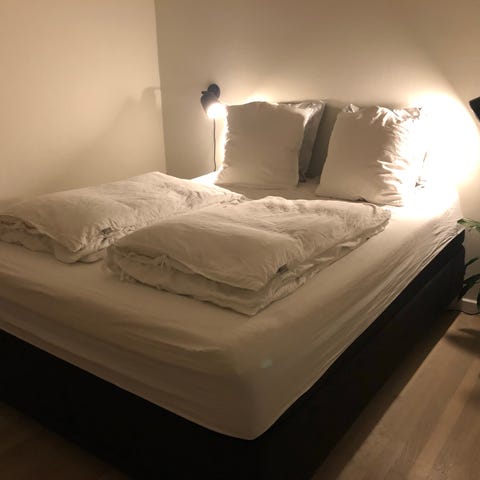 Kontinentalseng fra jysk i målene 150x200, sælges grundet flytning. Sengegavl og madras medfølger. Topmadras haves desværre ikke længere.