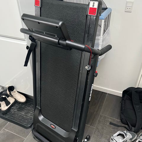 Titan TM3000S løbebånd i sort. Modellen har et digitalt betjeningspanel med drejeknap og display til styring af hastighed og funktioner. Løbebåndet har sikkerhedssnor, håndtag i begge sider og transporthjul foran, så det kan flyttes efter behov. Egnet til løbe- og gangtræning i hjemmet. Specificerede tekniske data som hastighedsinterval, motorstørrelse og løbeflade afhænger af den originale modelbeskrivelse fra producenten Titan.