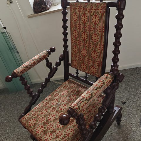 Rokkestol i eg med fodskammel