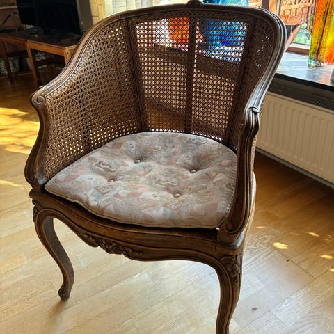 Havestol i flettet træ med pude. Byd gerne