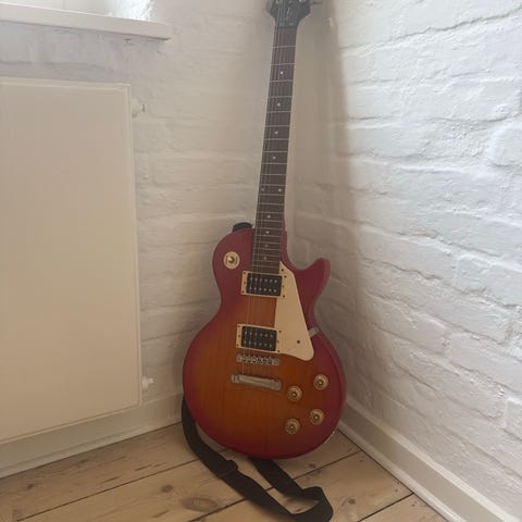 En solid og velspillende elguitar med den klassiske Les Paul-form og to humbuckers, som giver en fyldig lyd til rock, blues og meget andet.