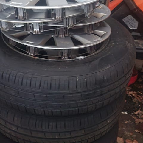 Str. 185/65X14 incl org Suzuki hjulkapsler. 4 stk for 1000kr